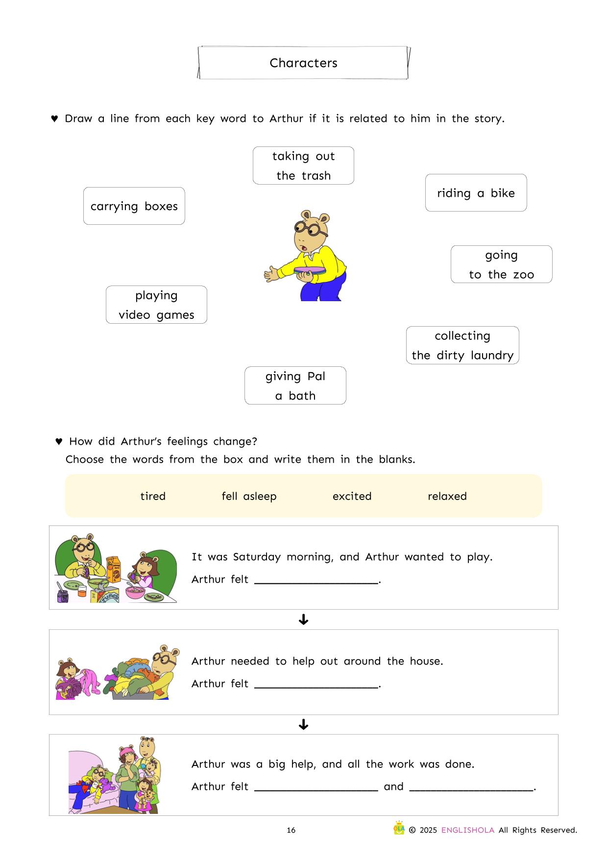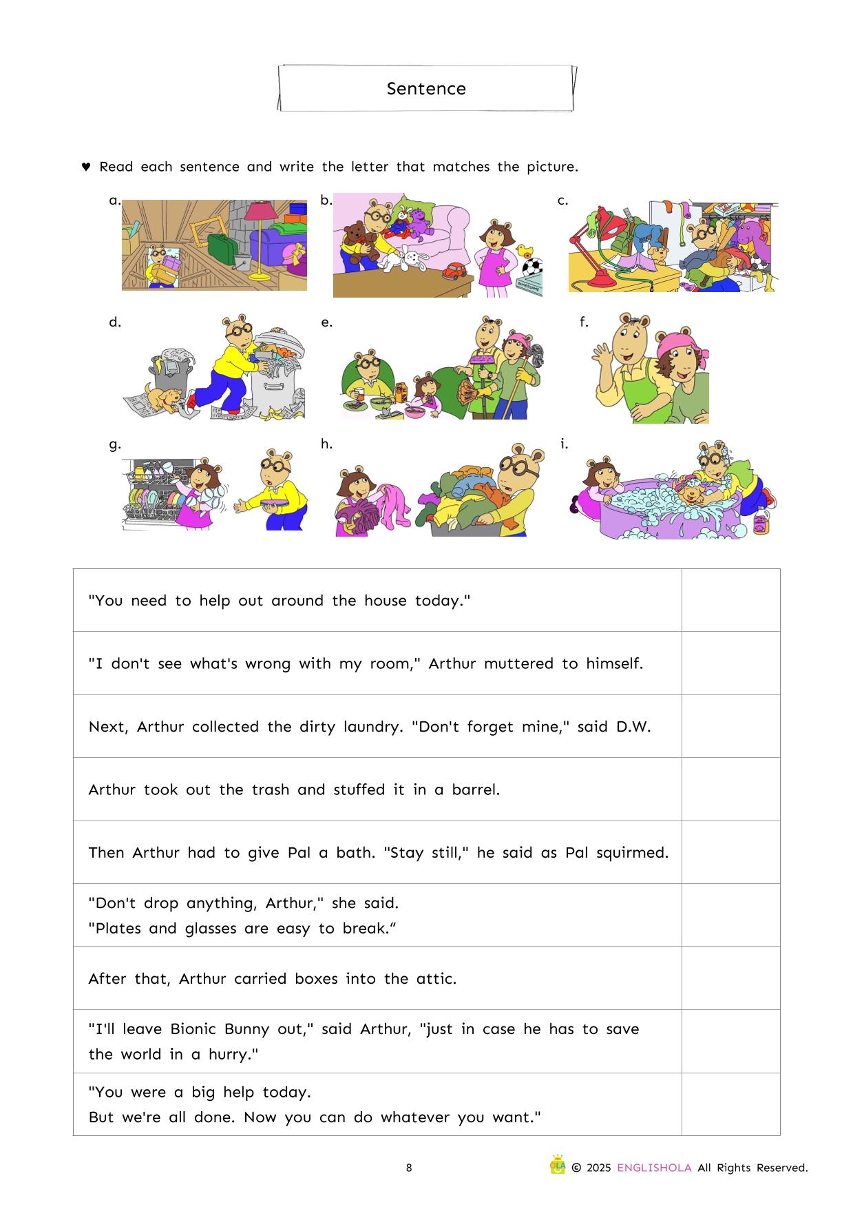 This comprehensive workbook for ‘Arthur Helps Out’ uses Arthur’s relatable experiences with everyday chores to drive meaningful literacy practice. As young readers explore the story, they will engage with targeted activities designed to strengthen vocabulary, sentence structure, and critical thinking