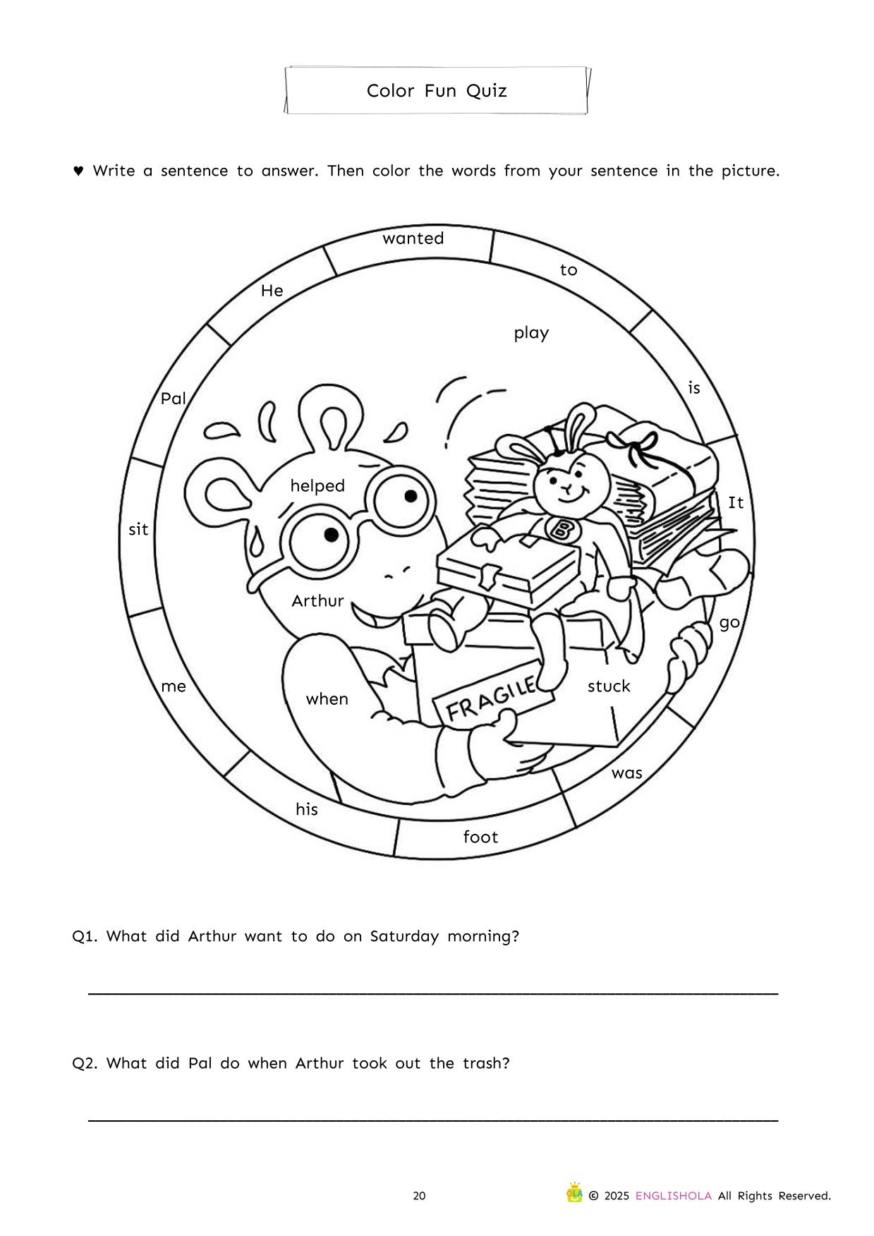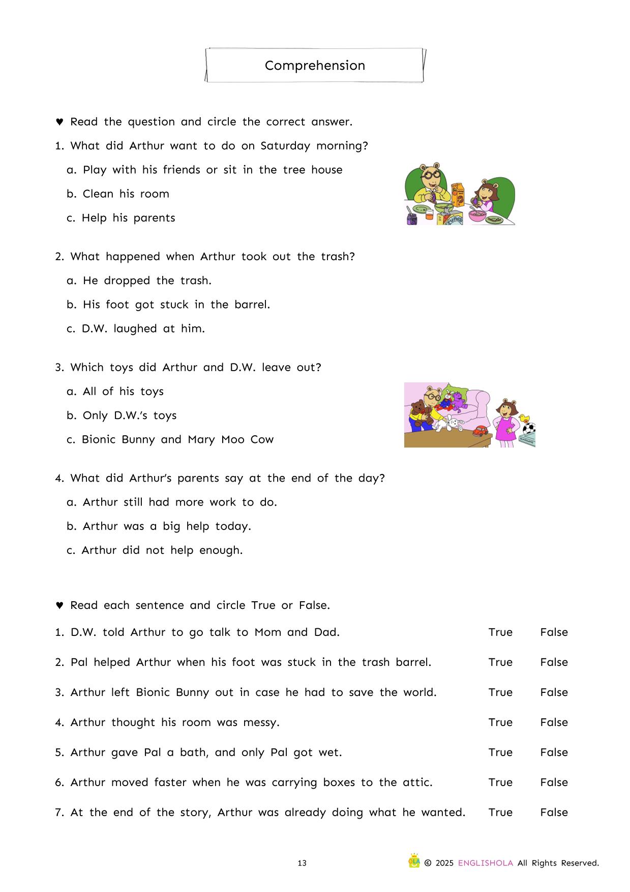 This comprehensive workbook for ‘Arthur Helps Out’ uses Arthur’s relatable experiences with everyday chores to drive meaningful literacy practice. As young readers explore the story, they will engage with targeted activities designed to strengthen vocabulary, sentence structure, and critical thinking.